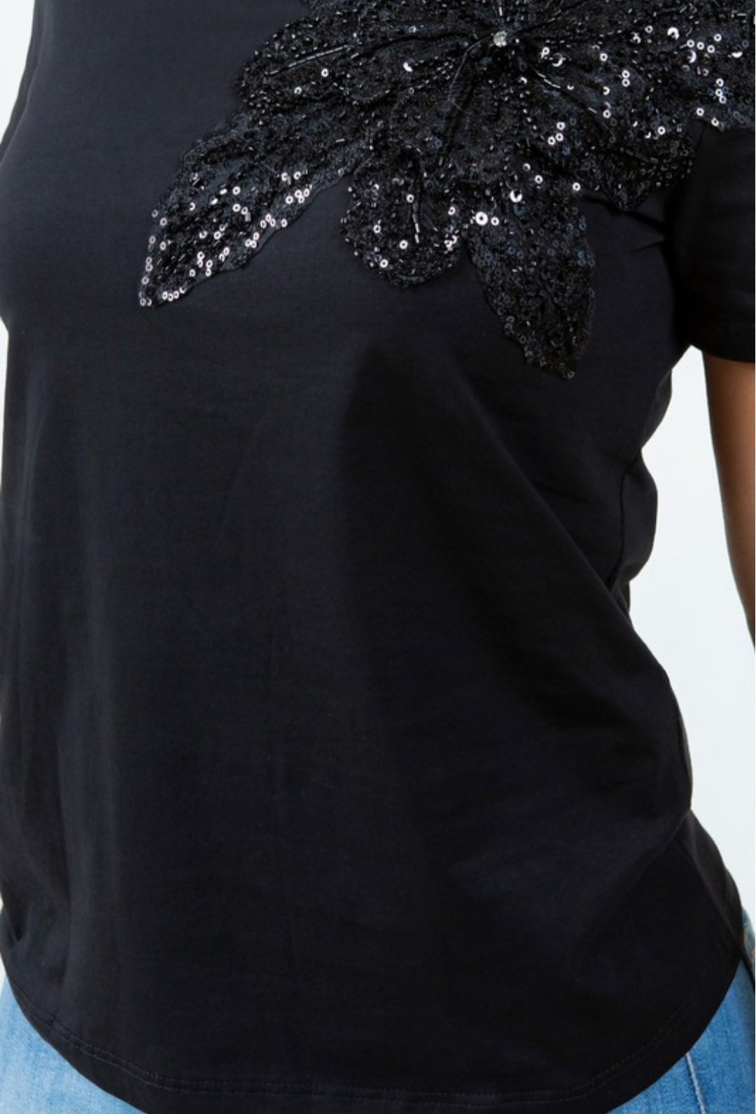 Black Tee with a sparkly flower