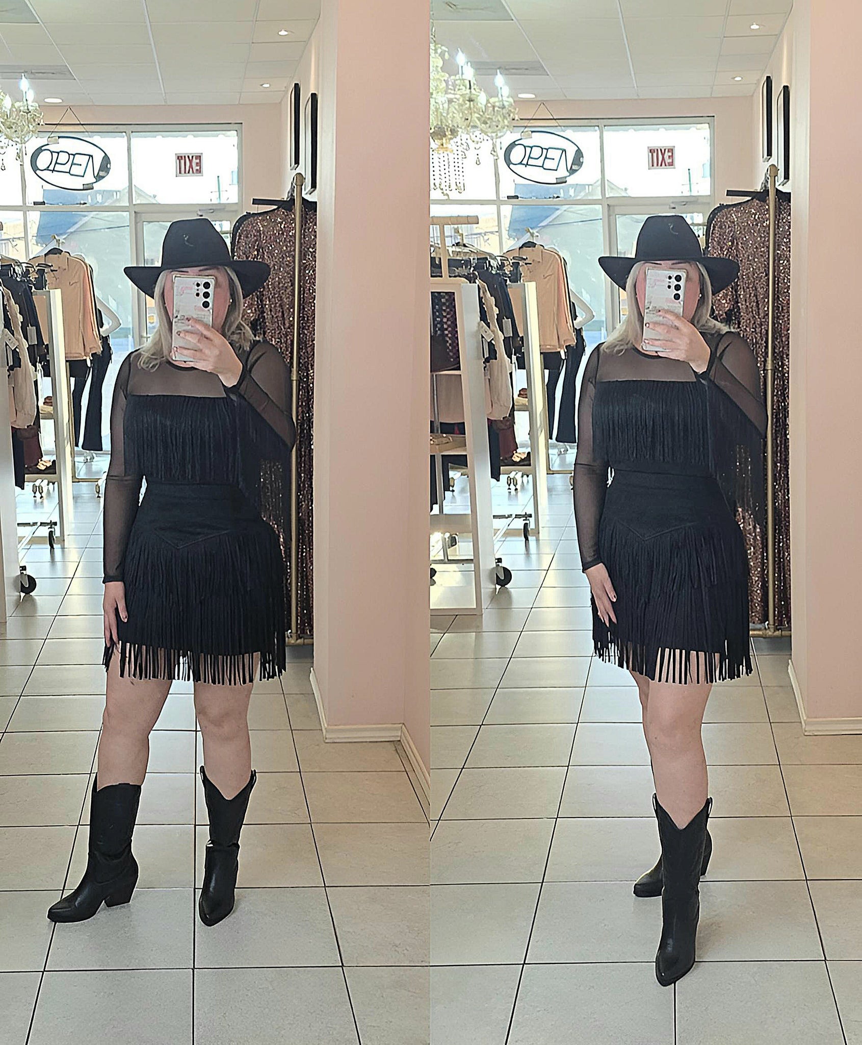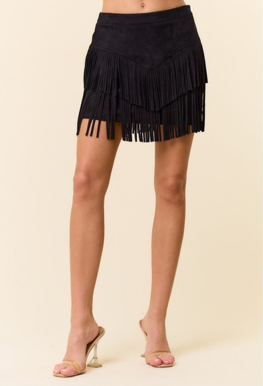 Black fringe suede skirt