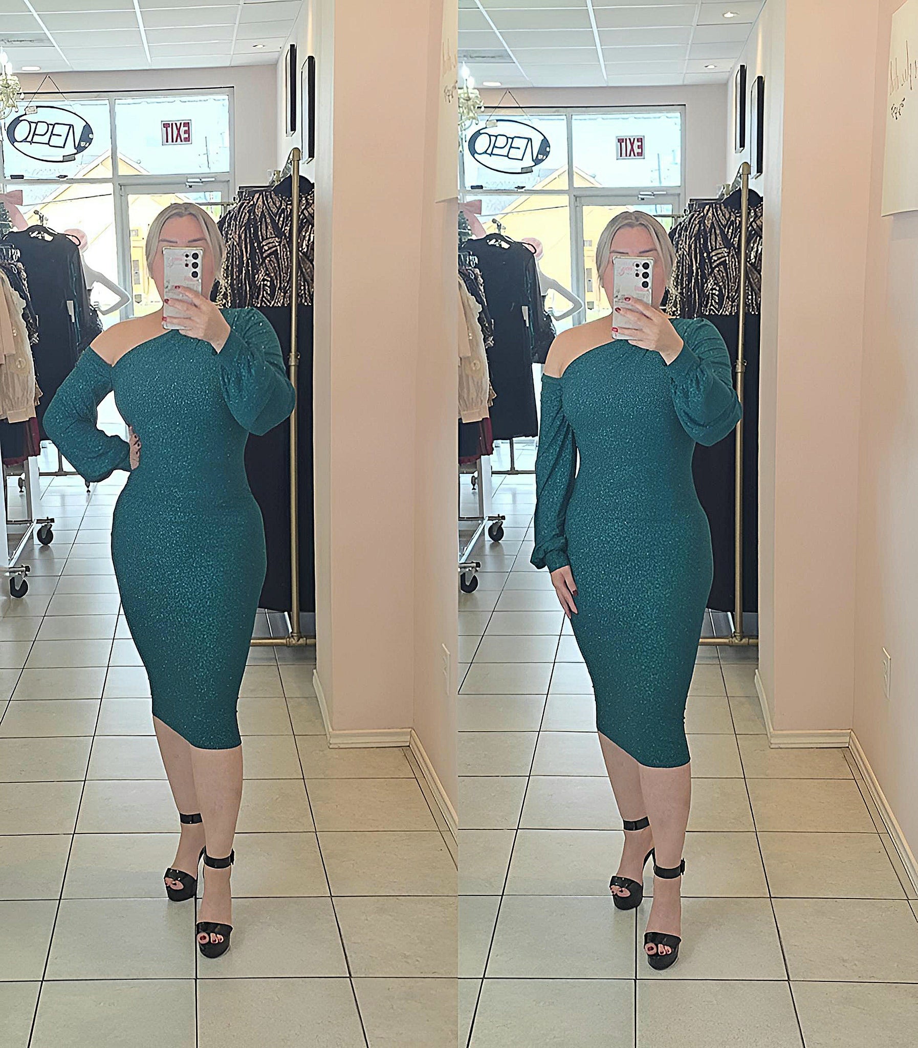 Green glitter dress